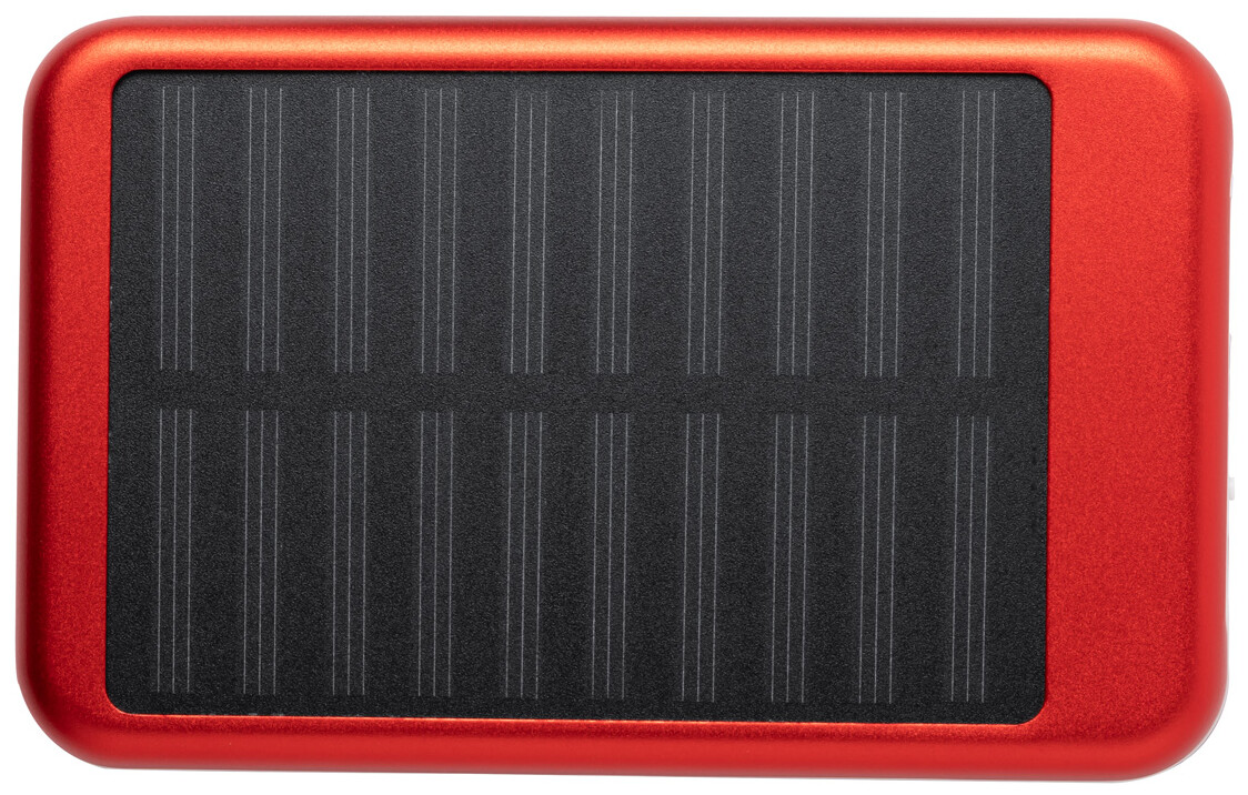 Hliníková USB power banka s 4000 mAh baterií a vestavěnou solární nabíječkou. Vč. micro USB nabíjecího kabelu.