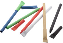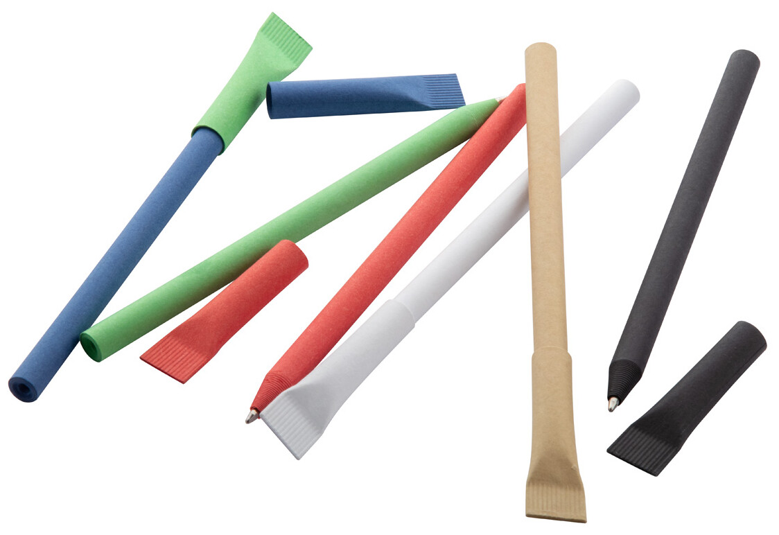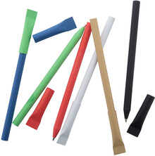 Recyklované papírové kuličkové pero se stejně barevným víčkem a modrou náplní.