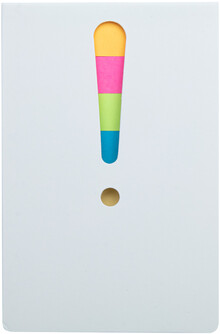 Samolepící bloček s 25 velkými a 100 malými samolepícími lístky (ve 4 různých barvách). S výřezem vykřičníku na deskách.