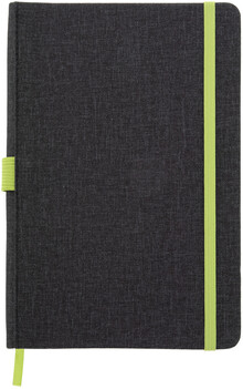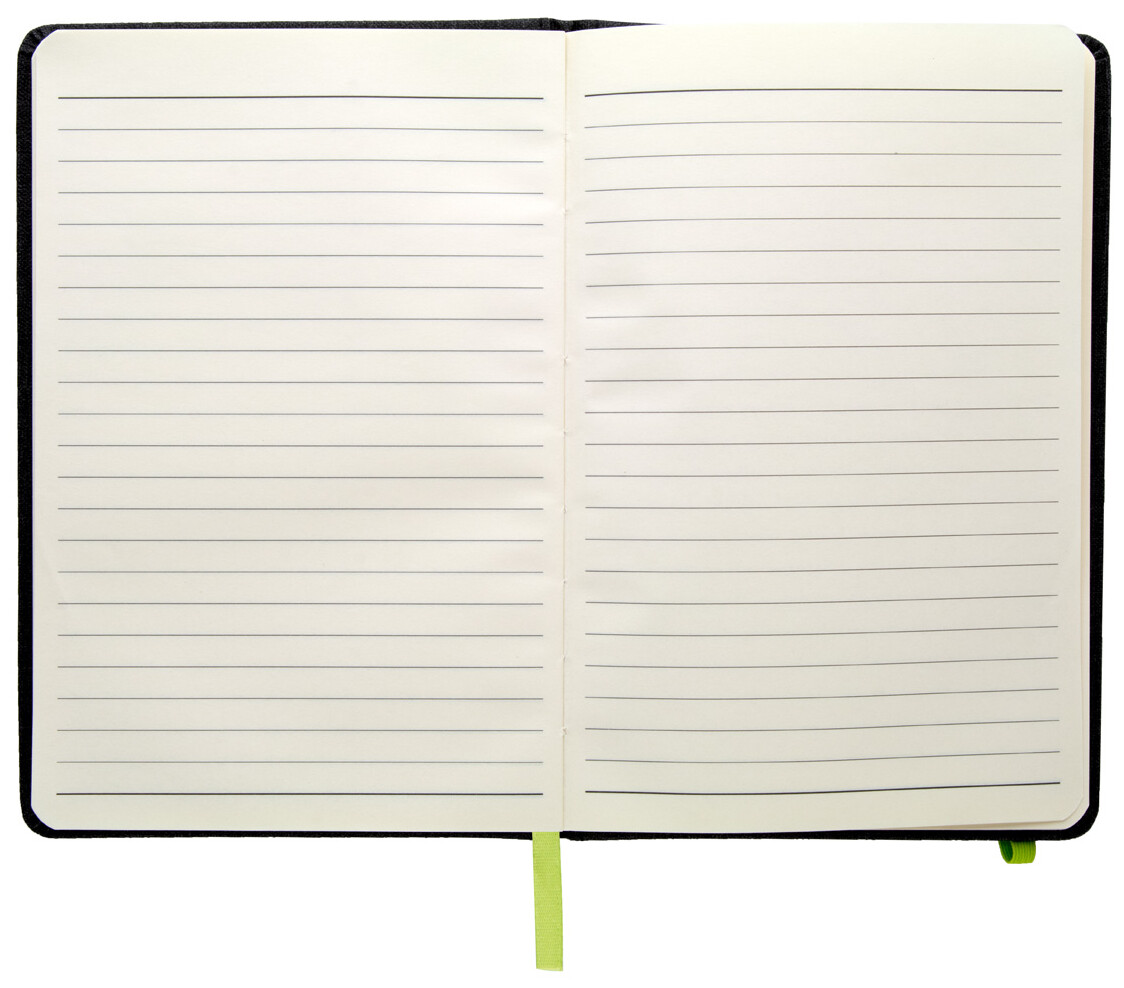 Texturovaný blok A5, potažený PU kůží se záložkou, gumičkou a držákem pera. 96 linkovaných listů.