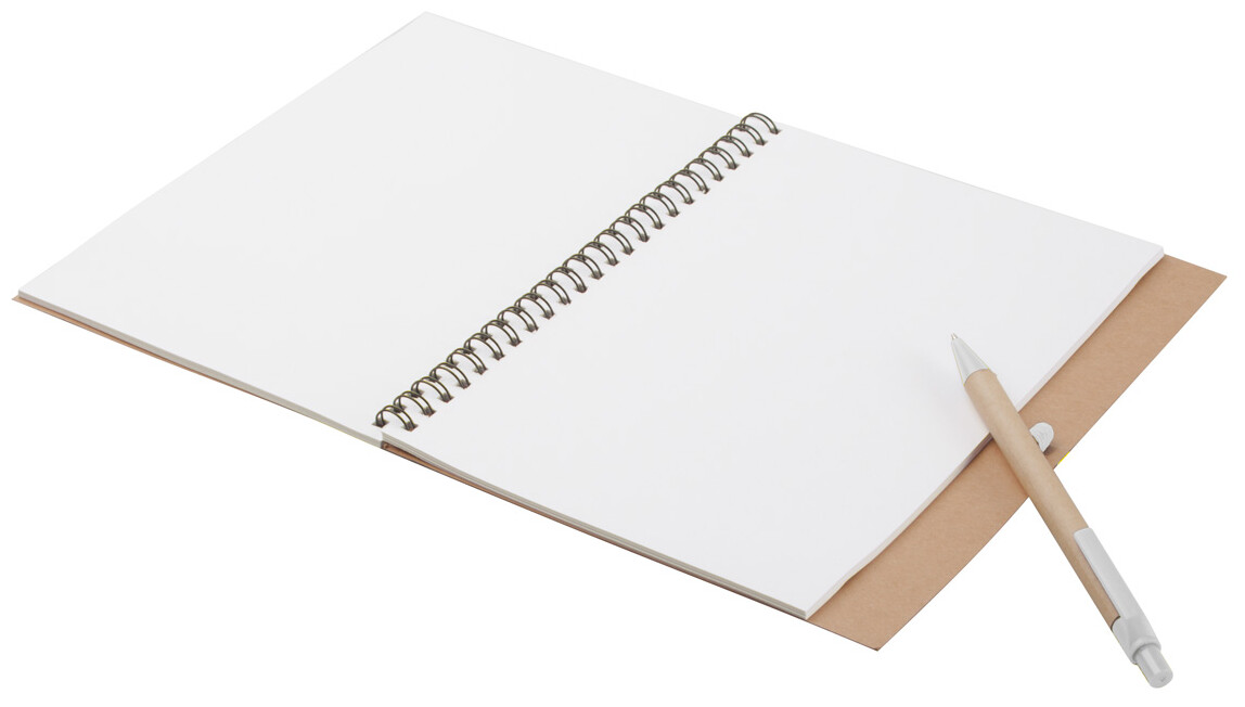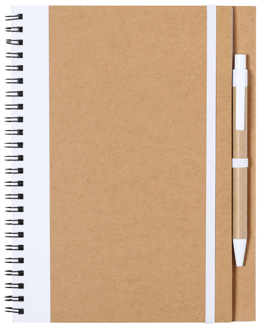 Nelinkovaný blok z recyklovaného papíru, se 60 listy a s papírovým kuličkovým perem.