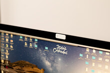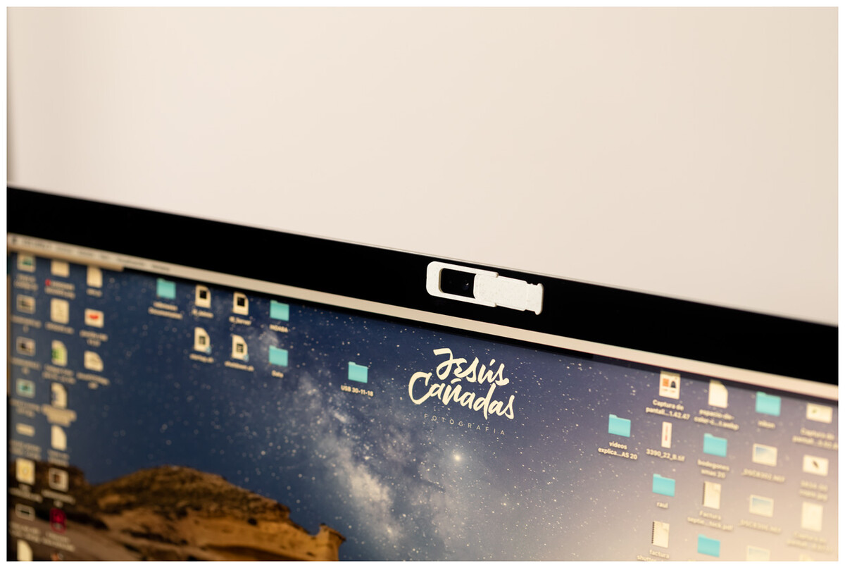 Krytka na web kameru z ekologického plastu z pšeničné slámy s posuvným krytem a samolepící zadní stranou.