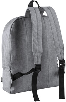 Batoh s přední kapsou na zip, boční kapsou ze síťoviny, polstrovanými zády a ramenními popruhy. 600D RPET polyester, s etiketou s označením RPET.