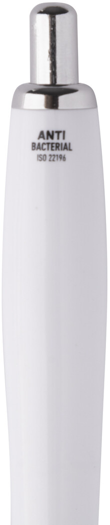 Plastové kuličkové pero s antibakteriální úpravou na těle a chromovými částmi. Obsahuje přísadu nano stříbra, které zabraňuje růstu bakterií na těle pera. Se stiskacím mechanismem a modrou náplní. V souladu s ISO 22196: 2011.