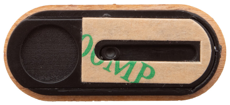 Krytka na webovou kameru s dřevěným posuvným krytem a samolepící zadní stranou.