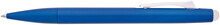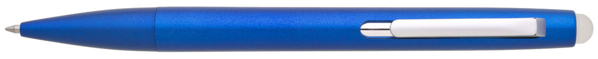 Gumovací plastová propiska v modré metalické barvě a stříbným klipem s koncovkou pro gumování napsaného textu. Náplň modrá, gumovací, s kratší životnosti než běžné kuličkové náplně.