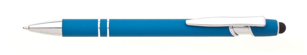 Propiska s touch koncem, měkkým pogumovaným soft povrchem v tyrkysové barvě a stříbrnými doplňky včetně dvou ozdobných kroužků. (NATIO)