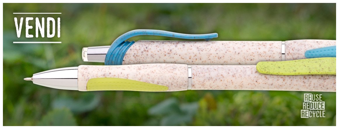 Propiska s plastem s podílem pšeničné slámy v přírodní barvy se světle modrým klipem a barevným gumovým úchopem. Náplň X20, hrot 0,5mm.