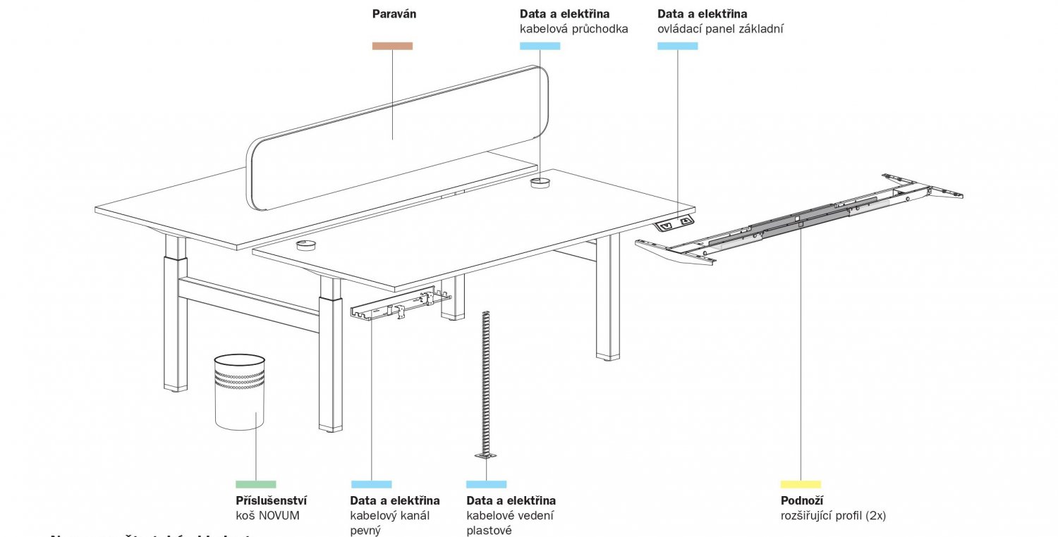 Výškově stavitelný zdvojený stůl v rozsahu 630-1290 mm.
