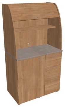 Dvě police ve vrchní části kuchyňky poskytují dostatečnou kapacitu pro vaše skleničky, hrnky či talíře. Na pracovní desku můžete umístit např. kávovar a kabelovou průchodkou v zadní části vyvedete přívodní kabel z prostoru kuchyňky.