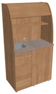Vedle spodní velké skříňky jsou umístěny 3 zásuvky, do kterých můžete uložit lžičky, ubrousky, čistící prostředky a pod.