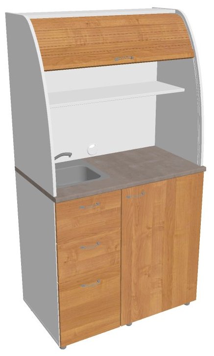 V provedení se dřezem je hloubka dvou vrchních zásuvek zkrácena právě z důvodu umístění dřezu.