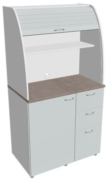 Dvě police ve vrchní části kuchyňky poskytují dostatečnou kapacitu pro vaše skleničky, hrnky či talíře. Na pracovní desku můžete umístit např. kávovar a kabelovou průchodkou v zadní části vyvedete přívodní kabel z prostoru kuchyňky.