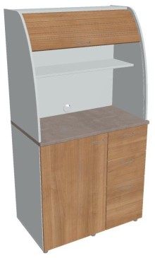 Dvě police ve vrchní části kuchyňky poskytují dostatečnou kapacitu pro vaše skleničky, hrnky či talíře. Na pracovní desku můžete umístit např. kávovar a kabelovou průchodkou v zadní části vyvedete přívodní kabel z prostoru kuchyňky.