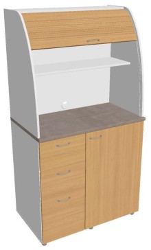 Dvě police ve vrchní části kuchyňky poskytují dostatečnou kapacitu pro vaše skleničky, hrnky či talíře. Na pracovní desku můžete umístit např. kávovar a kabelovou průchodkou v zadní části vyvedete přívodní kabel z prostoru kuchyňky.