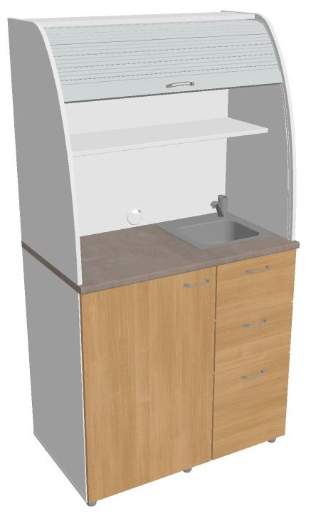 V provedení se dřezem je hloubka dvou vrchních zásuvek zkrácena právě z důvodu umístění dřezu
