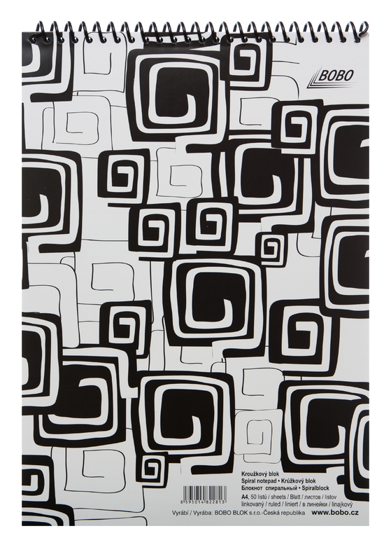 SPIRÁLOVÝ BLOK BLACK & WHITE, HORNÍ VAZBA, A4, LINKA