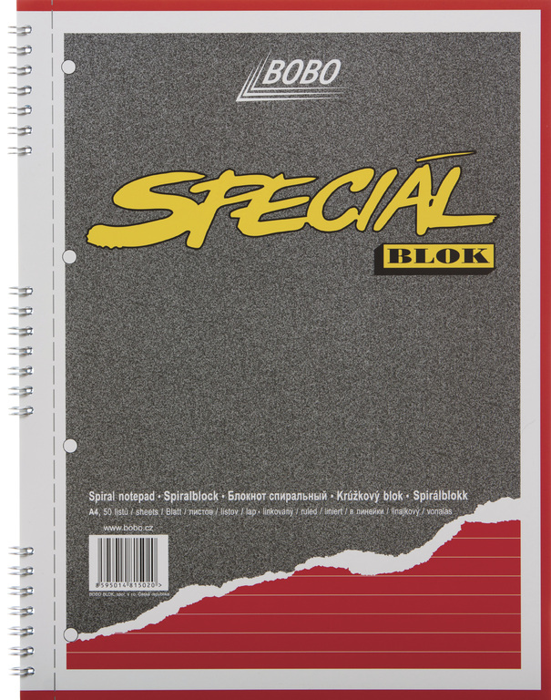 | 1708921 | SPIRÁLOVÝ BLOK BOBO SPECIÁL A4 linka | 85,32 Kč | 103,24 Kč | 1 ks | |||