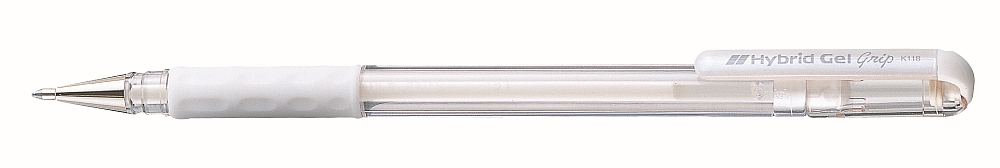 Pentel Hybrid Gel Grip - gelový roller s bílou výměnnou náplní Hybrid Gel. Gelový inkoust se sytou stopou perfektně kryje, vhodné pro tmavý papír, stínování kontur a krasopis. Plastové tělo s pogumovaným protiskluzovým držením a víčkem. Kovový kónický hrot se stopou 0,7 mm.