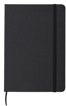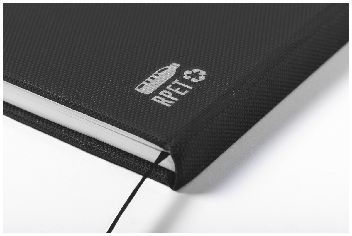 RPET blok A5 potažený polyesterem s 80 linkovanými listy, záložkou a gumičkou.