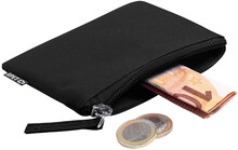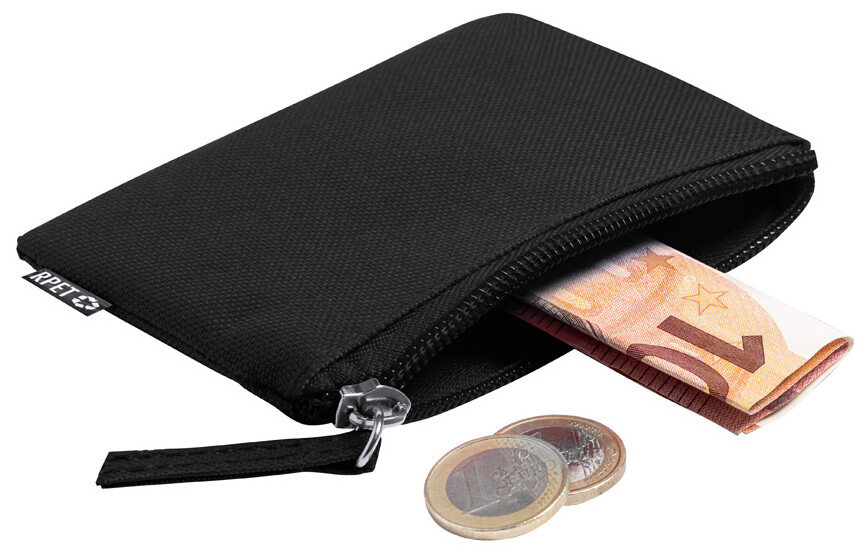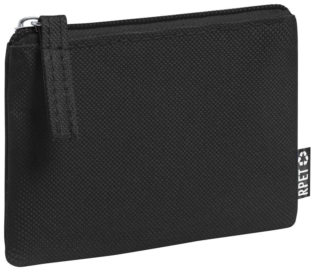 Peněženka na zip ze 600D RPET polyesteru, s etiketou s označením RPET.