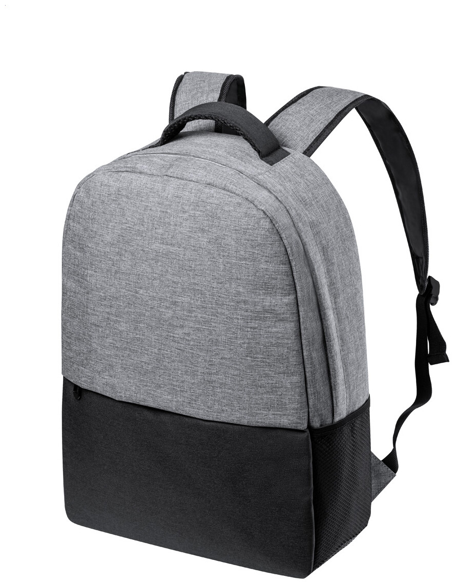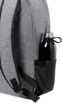 Dvoubarevný batoh RPET s hlavní kapsou na zip, polstrovanou přihrádkou na notebook (15 ") a tablet (10"), postranními kapsami, polstrovanými zády a ramenními popruhy. 600D RPET polyester.