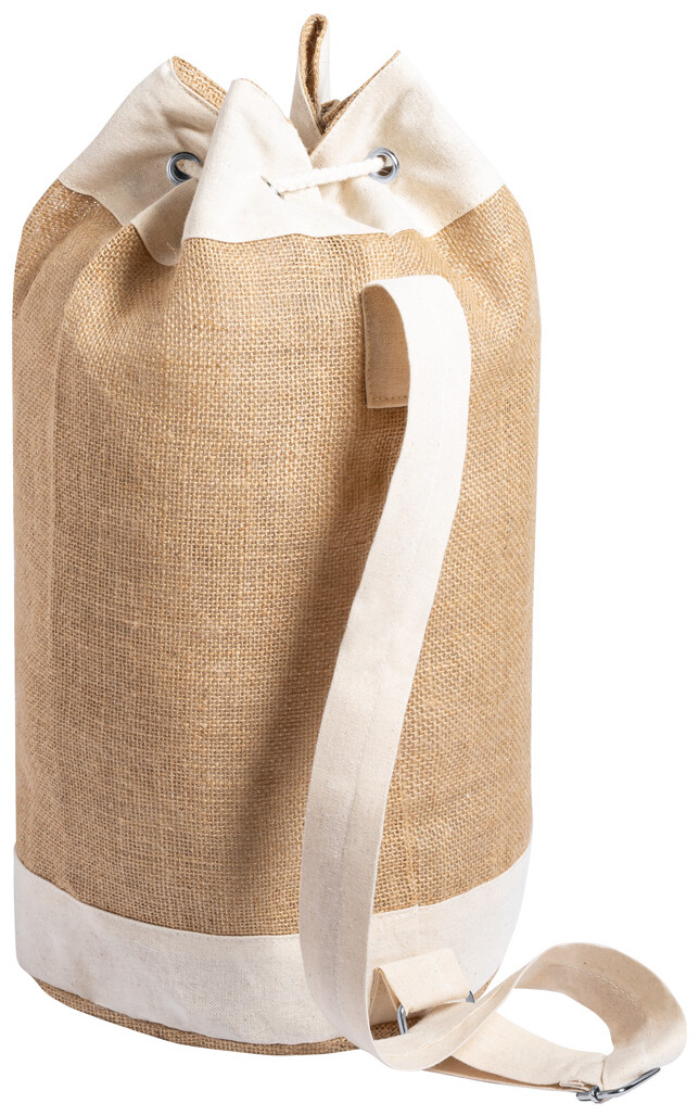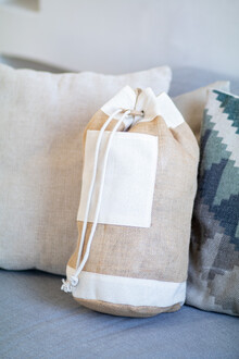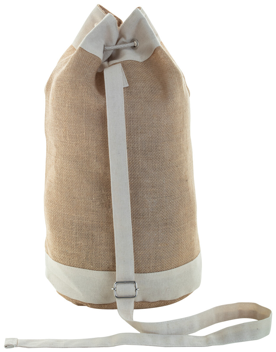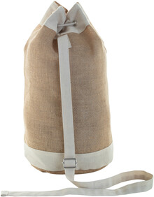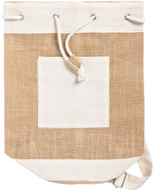 Jutový námořnický vak se stahováním šňůrkou a bavlněnou přední kapsou.