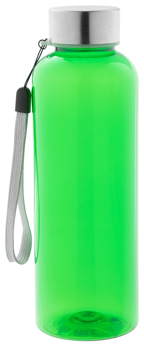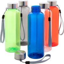 RPET láhev s nerezovým uzávěrem a popruhem, 500 ml. Bez BPA. Nevhodné pro sycené nápoje.
