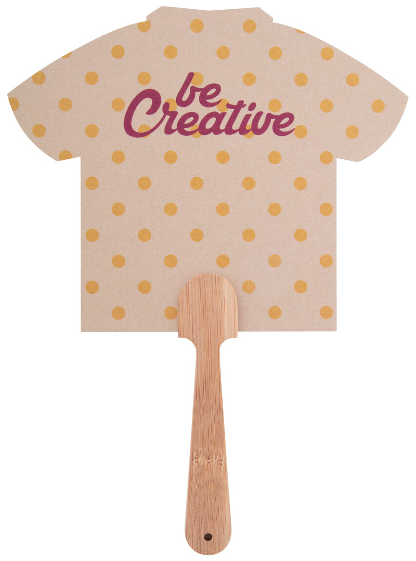 Vějíř vyrobený na zakázku s bambusovou rukojetí a kraftovým papírem. Cena zahrnuje digitální tisk na obou stranách, nezahrnuje tiskovou přípravu. Min. mn.: 100 ks.