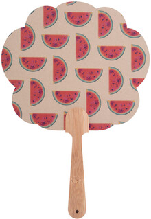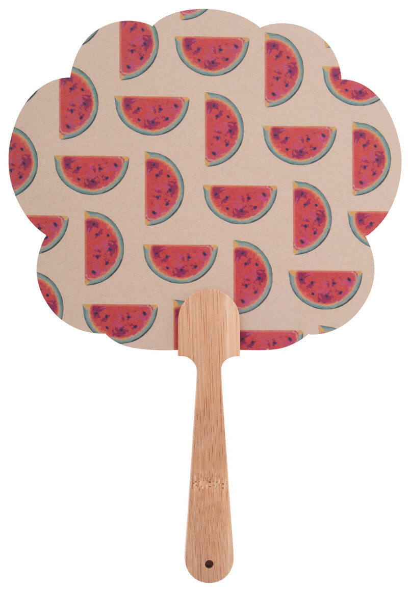 Vějíř vyrobený na zakázku s bambusovou rukojetí a kraftovým papírem. Cena zahrnuje digitální tisk na obou stranách, nezahrnuje tiskovou přípravu. Min. mn.: 100 ks.