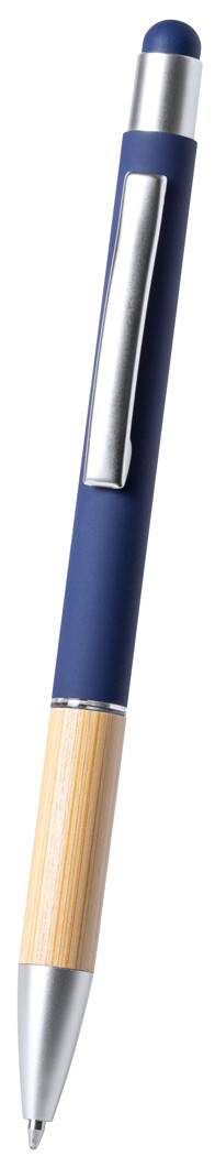 Hliníkové kuličkové a dotykové pero s bambusovým uchopením a matným povrchem. S modrou náplní.