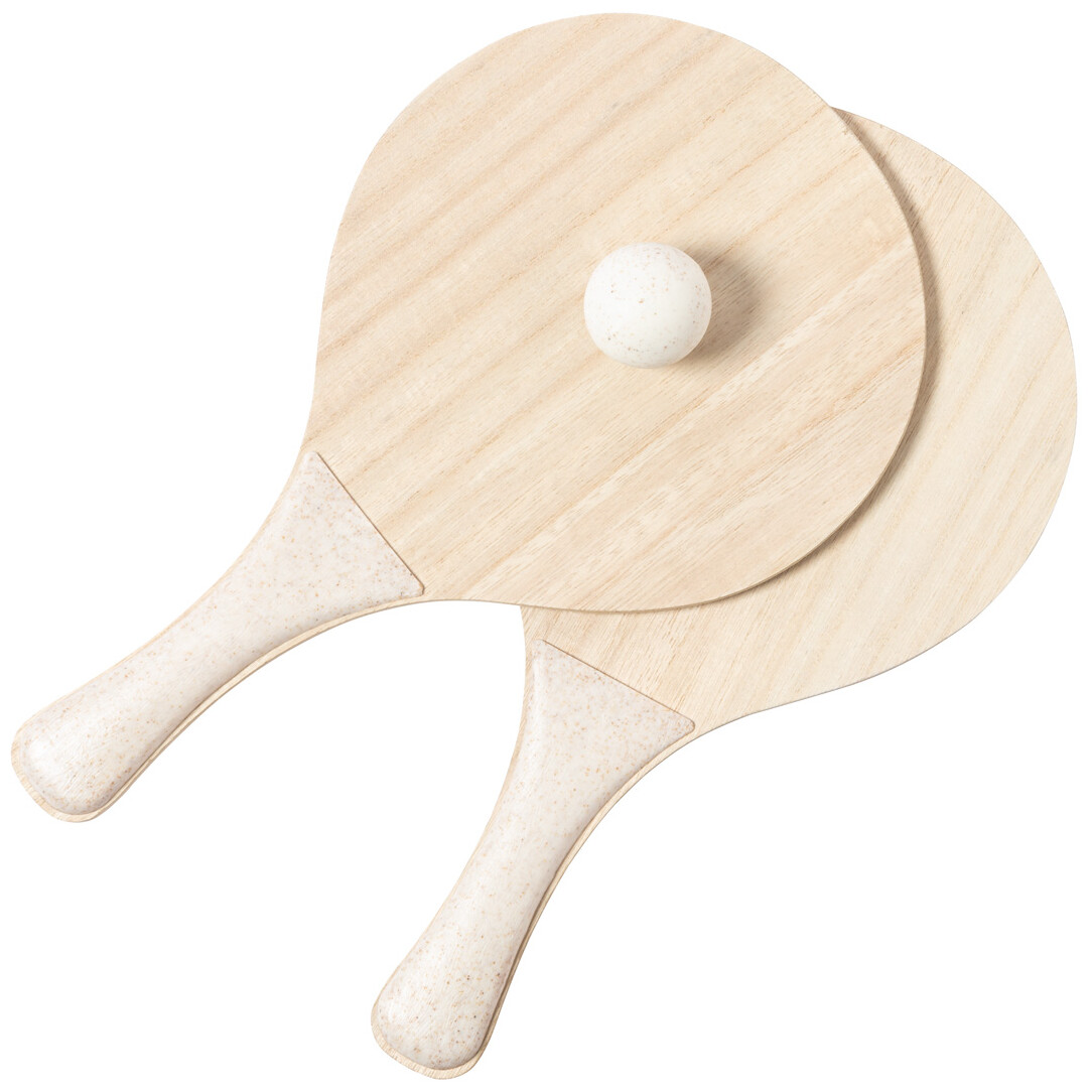 Plážový tenis se 2 raketami a jedním míčkem, vyrobený ze dřeva a ekologického plastu z pšeničné slámy.