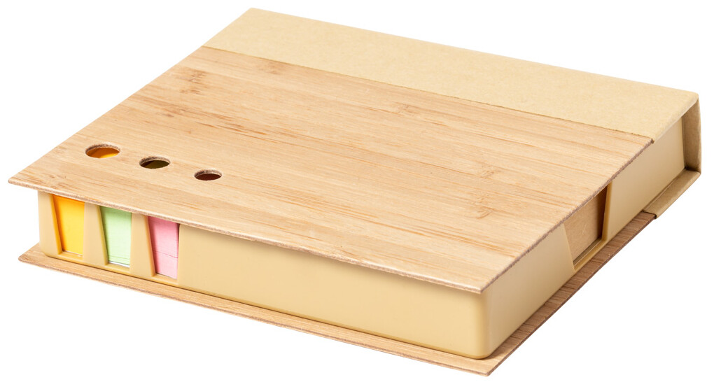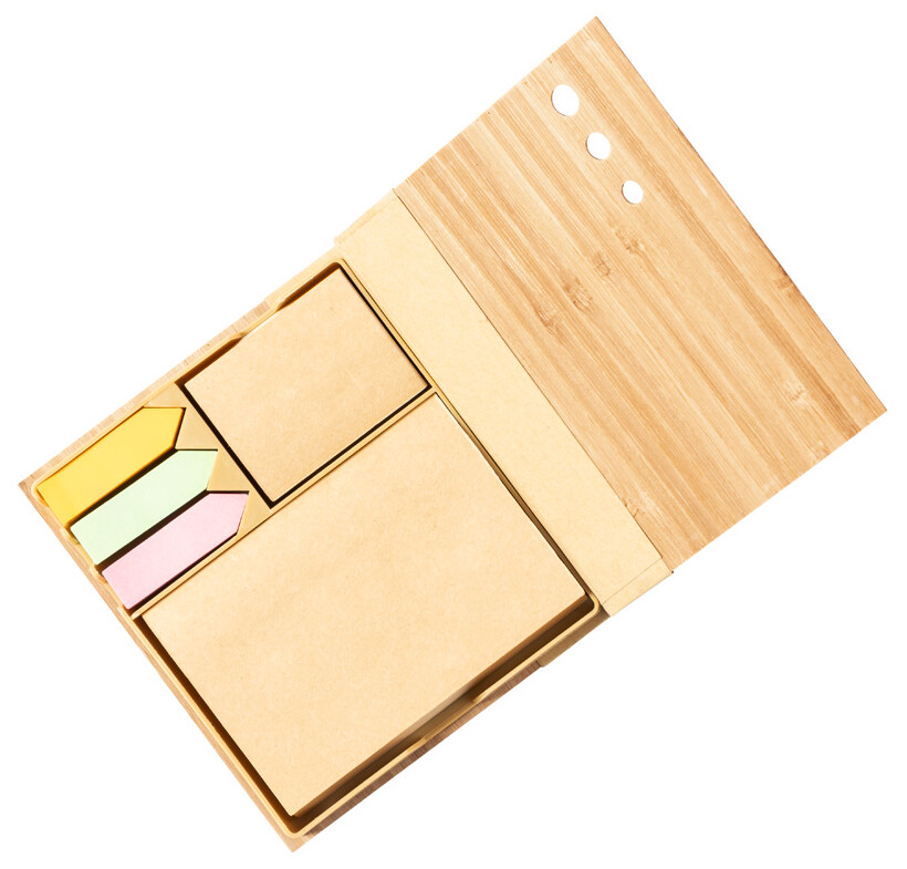 Blok z recyklovaného papíru potažený bambusem se 115 velkými, 115 středními a 420 mini lepicími lístky (ve 3 různých barvách).