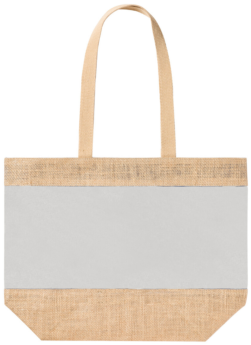 Barevná plážová taška v kombinaci laminované juty a laminované bavlny s dlouhými uchy.