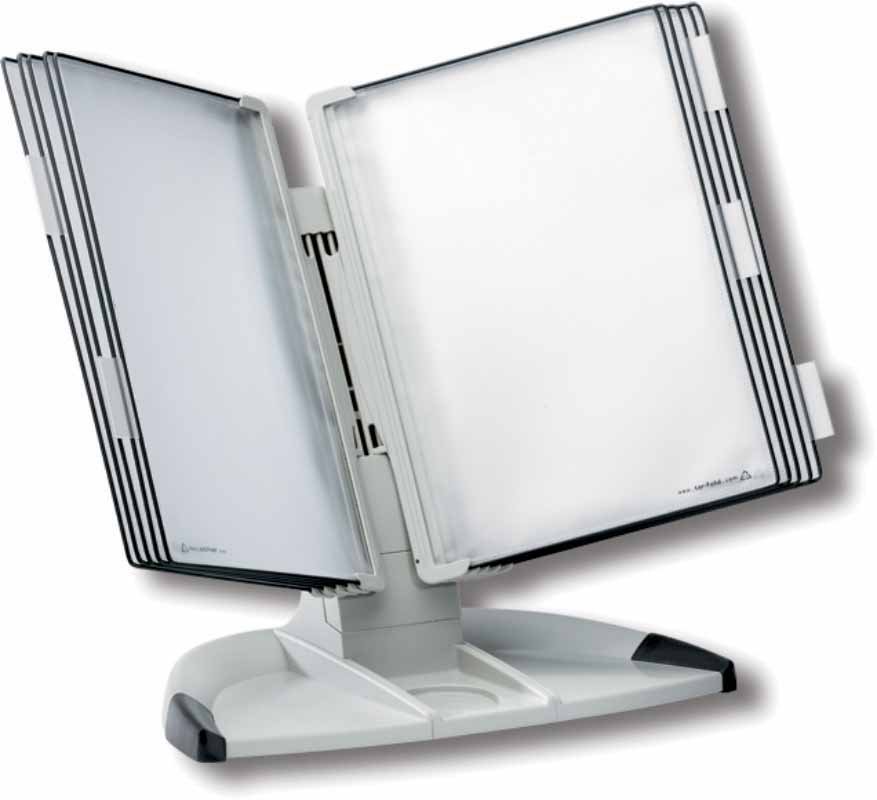 Samostatný lakovaný ocelový stojan s kapacitou 20 panelů. Včetně praktických zarážek, které zaručují otevření panelů na požadovaných stránkách. Dodáváno samostatně.