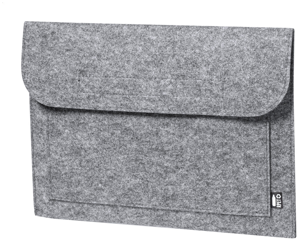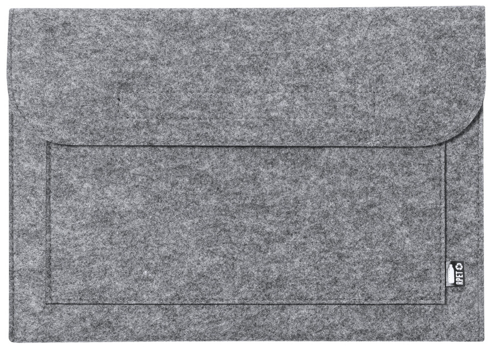Pouzdro z RPET plsti na laptop s přední kapsou a zapínáním na suchý zip. S výrazným štítkem RPET.