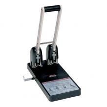 Blokový celokovový děrovač Děrovač s kapacitou až 150 listů, průměr otvoru 5,5 mm, rozteč otvorů 80 mm. Kovový příložník. Barevné provedení: černé.