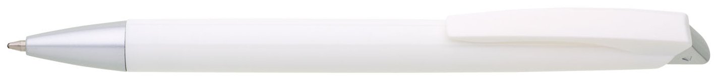 Plastová propiska z kolekce DESIGN, barevné tělo s matnými doplňky s atypickým zapínáním. Náplň velkoobsahová, modře píšící.
