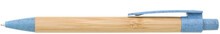 Bambusové tělo propisky s doplňky z plastu s podílem slámy. Náplň modře píšící velkoobsahová.