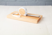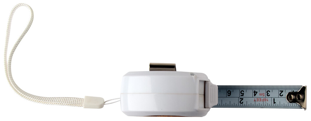 Plastový a bambusový svinovací metr s aretací, kovovým klipem a poutkem na ruku, 5 m.