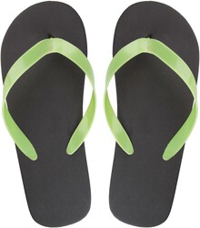 Plážové žabky na zakázku s PE podrážkou a PCV pásky. Barevnost podrážky a pásků lze na vyžádání kombinovat. Min. mn.: 50 párů/kombinace.