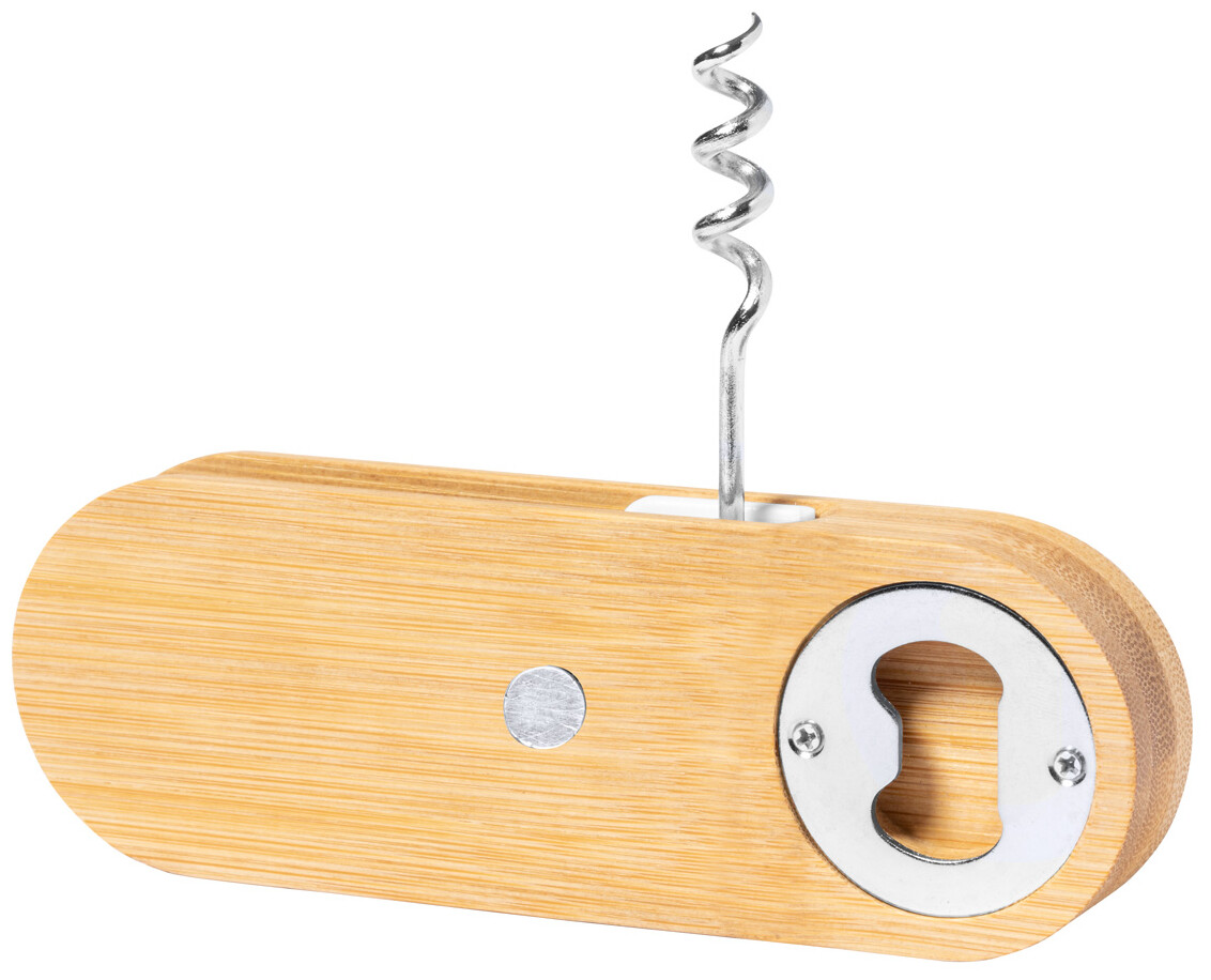 Magnetický bambusový otvírák a vývrtka.