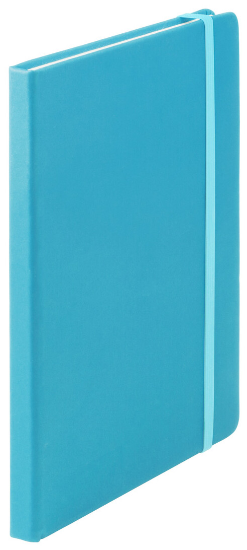 Poznámkový blok se 100 listy, záložkou a gumičkou.