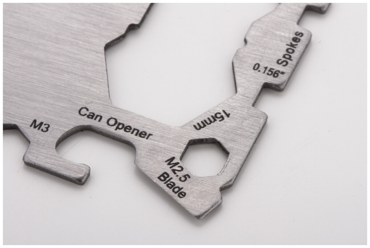 Multifunkční nářadí z nerezové oceli ve tvaru kreditní karty se 20 funkcemi, v pouzdře z PU kůže.