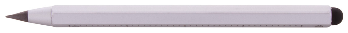 Bez inkoustové pero s dlouhou životností z recyklovaného hliníku s dotykovým stylusem a hrotem z kovové slitiny, který oxiduje papír. S šestihrannou hlavní včetně pravítek 11 cm a 4 palce. Toto pero píše podobně jako tužka a navíc je stíratelné.