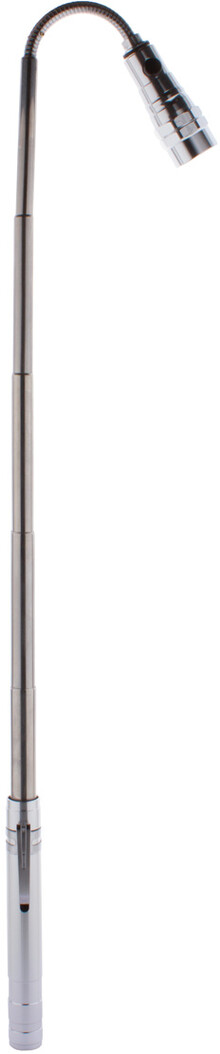 3 LED hliníková svítilna s výsuvnou a flexibilní hlavou, magnetem nahoře a kovovou boční sponou. Včetně knoflíkových baterií. Max. délka: 57 cm.
