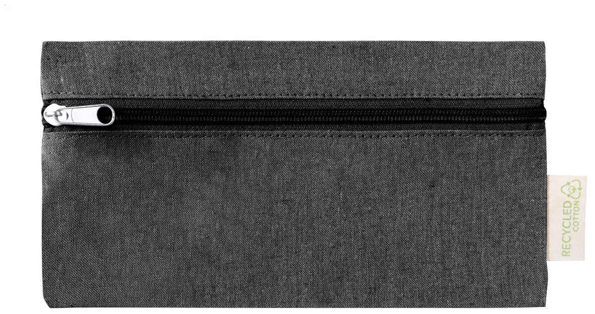 Pouzdro na pera z recyklované bavlny na zip s výrazným štítkem. 100% recyklovaná bavlna.