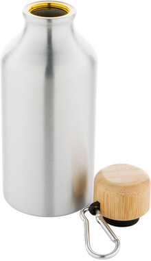 Hliníková láhev s bambusovým víčkem a karabinou, 400 ml.