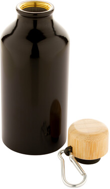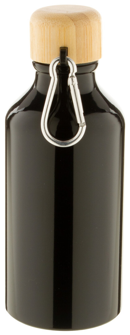 Hliníková láhev s bambusovým víčkem a karabinou, 400 ml.