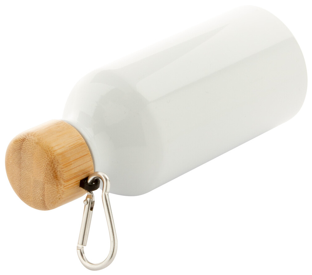 Hliníková láhev s bambusovým víčkem a karabinou, 400 ml.